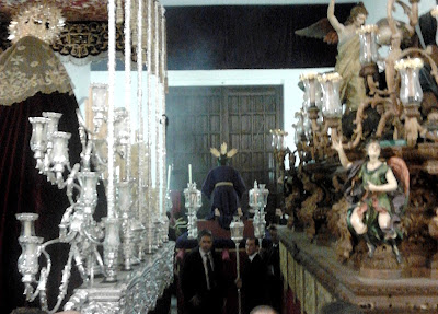 Estarás al tanto del tema que salió como encuesta en este blog y que tanto ha dado que hablar, como es la Unificación del Recorrido Oficial, el comentario más repetido es... ¿Y qué haría la Paz?... ¿ Cuál es tu opinión sobre este tema desde el punto de vista cofrade y desde el punto de vista de capataz de uno de los pasos con más recorrido de nuestra Semana Santa? Pues como cofrade sería muy bonito, como capataz y hermano de la Paz, me parece una locura, pues tendría que aumentar el horario del recorrido al menos 2 horas, y eso supondría para nazarenos y costaleros un gran esfuerzo, y en el tema de los costaleros ahora mismo no habría muchos problemas, pues los 2 pasos de la hermandad contamos con 2 cuadrillas, pero esto por desgracia no será siempre y con "30 pelas" haber quien aguanta 9 horas en la calle, la solución podría ser que todas las hermandades entraran por la calle del Huerto, así nosotros no tendríamos problemas.